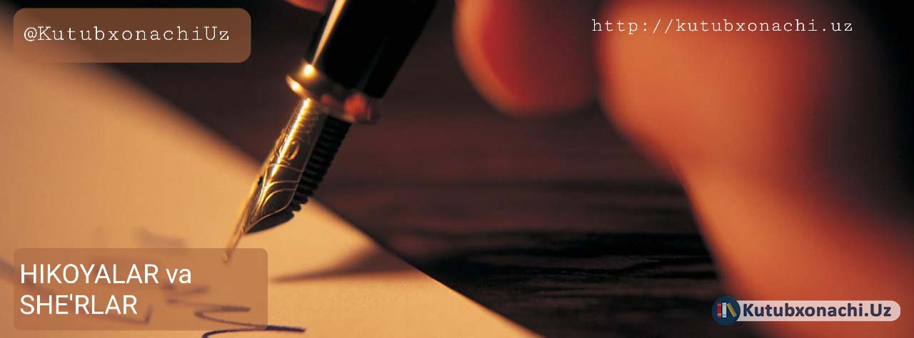 Assalomu alaykum hurmatli kitobxon bugungi O'zbekiston Respublikasi hududida jumaladan ko'pgina davlatlarda karantin e'lon qilingandan bo'yon kutubxonaga borib o'qish imkoniyatimiz cheklandi, ammo siz kitobxonalarga hech qanday narsa to'siq bo'lmasligi zarur hisoblanadi. Biz KUTUBXONACHI guruhimiz sizlar uchun ya'nada qo'laylik yaratish maqsadida biz 📖 HIKOYALAR va SHE'RLAR loyihasini ishga tushurdik! Bunda siz hikoyalar va she'riyat olamidan barhamand bo'lishingiz mumkin. Loyihamiz Kutubxonachi.Uz ning bir qismi hisoblanadi. Loyihamiz Telegram Tarmog'idagi manzili